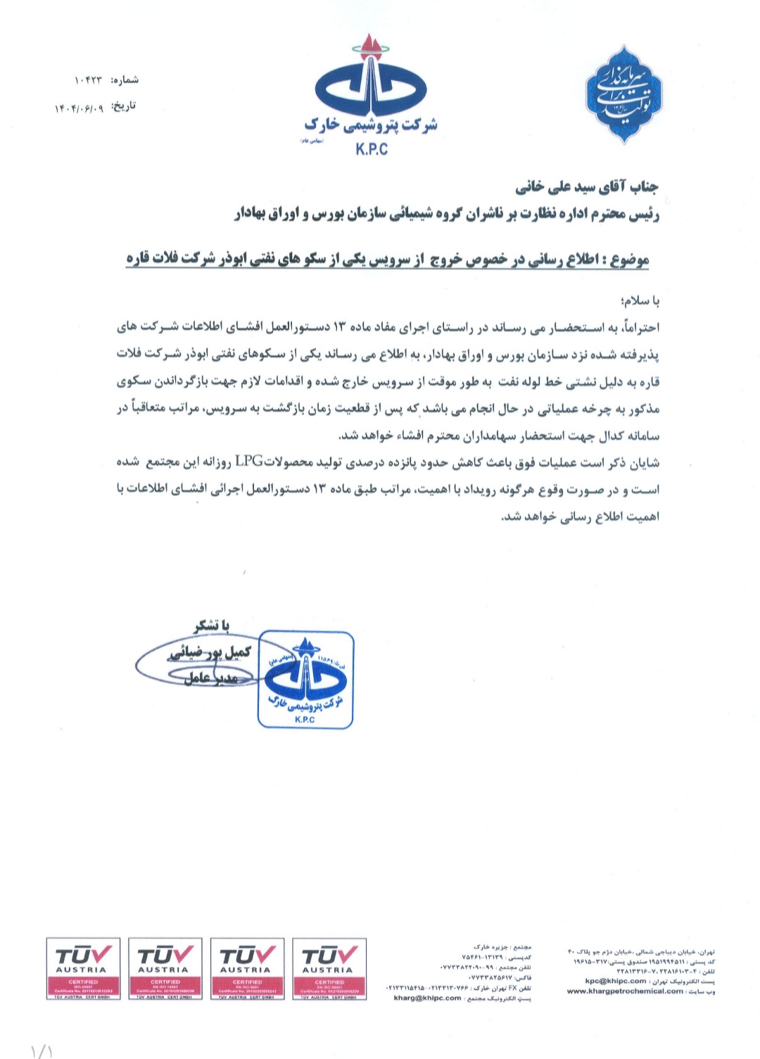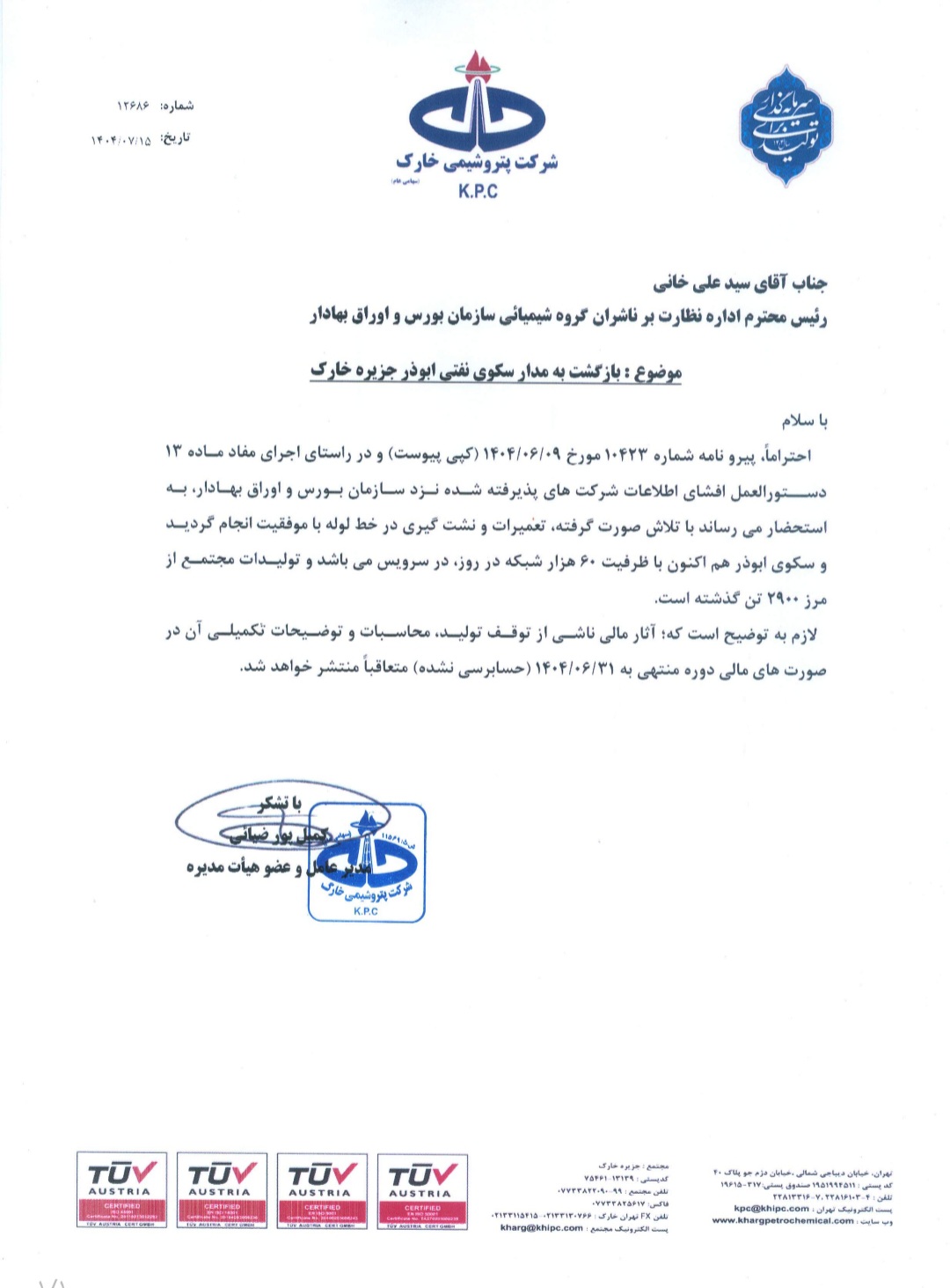 به گزارش چغادک نیوز، شرکت پتروشیمی خارک طی سه اطلاعیه رسمی به سازمان بورس و اوراق بهادار، جزئیات توقف و بازگشت به مدار یکی از سکوهای نفتی ابوذر را منتشر کرد.